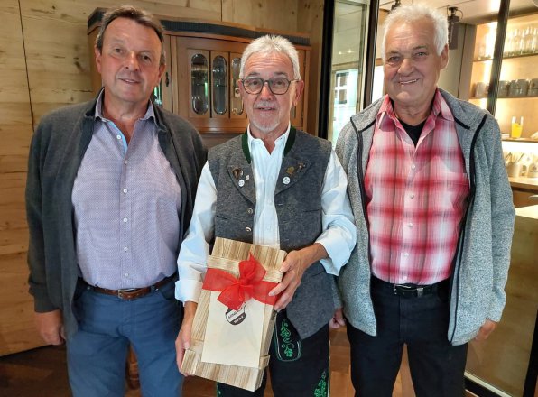 An seinem Ehrentag besuchten ihn der 2. Vorsitzende Sepp Mayr und Stockschützen-abteilungsleiter Johann Burgmair und überbrachten die Glückwünsche und Geschenke des Vereins.