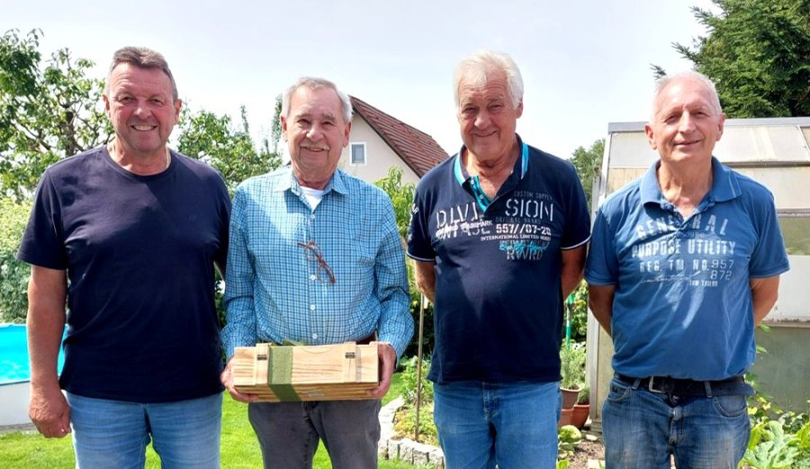 An seinem Ehrentag haben den Jubilar der 2. Vorsitzende Sepp Mayr und die Stockschützenvertreter Hans Burgmair und Peter Schönwetter besucht und die Glückwünsche des Vereins überbracht.