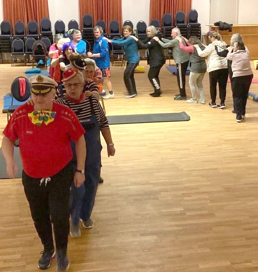 Auch am Faschingsdienstag traf sich die Gymnastikgruppe 60plus zu ihrem wöchentlichen Training.