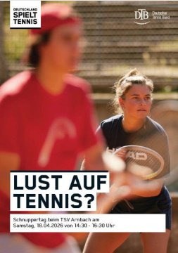 Dann komm am Samstag, 18. April 2026 von 14.30 bis 16.30 Uhr zu unserem Schnuppertag auf die Tennis-Anlage.