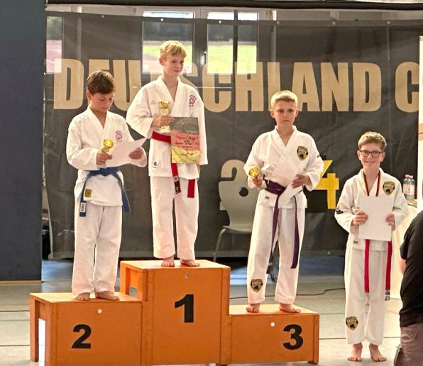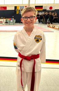 den dritten Platz konnte er zwar nicht für sich ent-scheiden, kann aber stolz darauf sein, der Viertbeste im "Kumite" (Zweikampf) von 120 Teilnehmern und ganz Deutschland zu sein. Wir