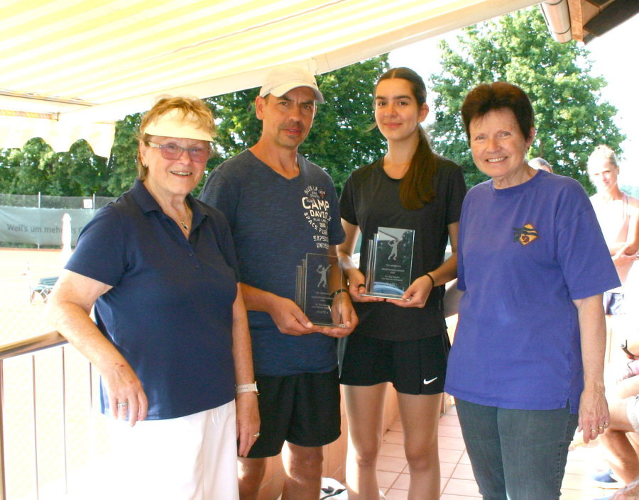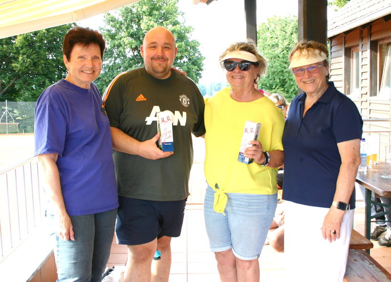 Die anschließende Siegerehrung nahmen Inge Schuardt und Renate Hitz in Vertretung der erkrankten Maria Zauner vor, nicht ohne die Beteiligten um eine Gedenkminute für die verstorbenen Mitglieder zu bitten, zu deren Ehren das Turnier stattfand und deren Ehefrauen die Pokale für das Siegerpaar gestiftet haben.In geselliger Runde saß man anschließend noch lange auf der Terrasse zusammen und alle waren sich einig, einen schönen Tag erlebt zu haben.