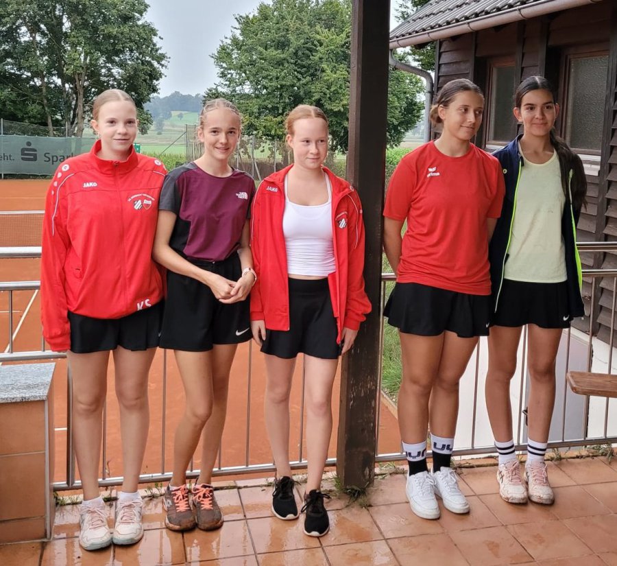 Unsere Bambini, nach dem letzten Punktspiel der Saison, das sie mit 5:1 gegen den TC Dachau gewonnen haben. Es waren knappe Siege dabei, die über Tiebreaks gingen, aber diesmal war das Glück auf unserer Seite, während bei vorherigen Begegnungen mehrfach Matches im Matchtiebreak verloren gingen.